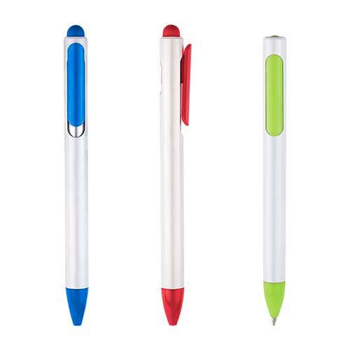Bolígrafo con touch screen. Mecanismo pulsador para ocultar el clip.