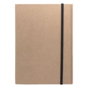 15 x 21 x 2.4 cm. (cerrado) y 48 x 21 cm. (abierto). Cartón kraft de gran firmeza. Cuaderno anotador múltiples funciones. El kit contiene: un bloc de hojas rayadas con fecha y dia de la semana, regla de madera, regla de pvc, dos lápices negros, goma de borrar, sacapuntas y bolígrafo tinta negra. Ademas un set de Post- it cuadrados amarillos y tiras plásticas autoadhesivas de diferentes colores (azul, verde, amarillo, rosa y naranja). El cierre del cuaderno es con una banda elástica de color negro que permite una buena sujeción.