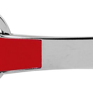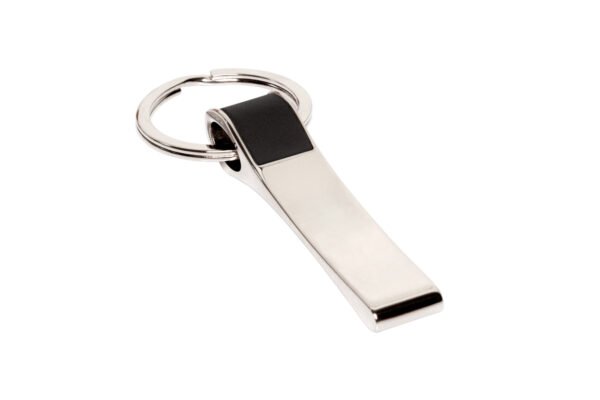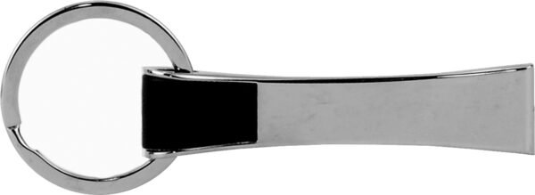 6,3 x 1,4 cm. Metal y símil cuero. Llavero plano con detalles en la parte superior símil cuero. Presentación en caja de regalo.